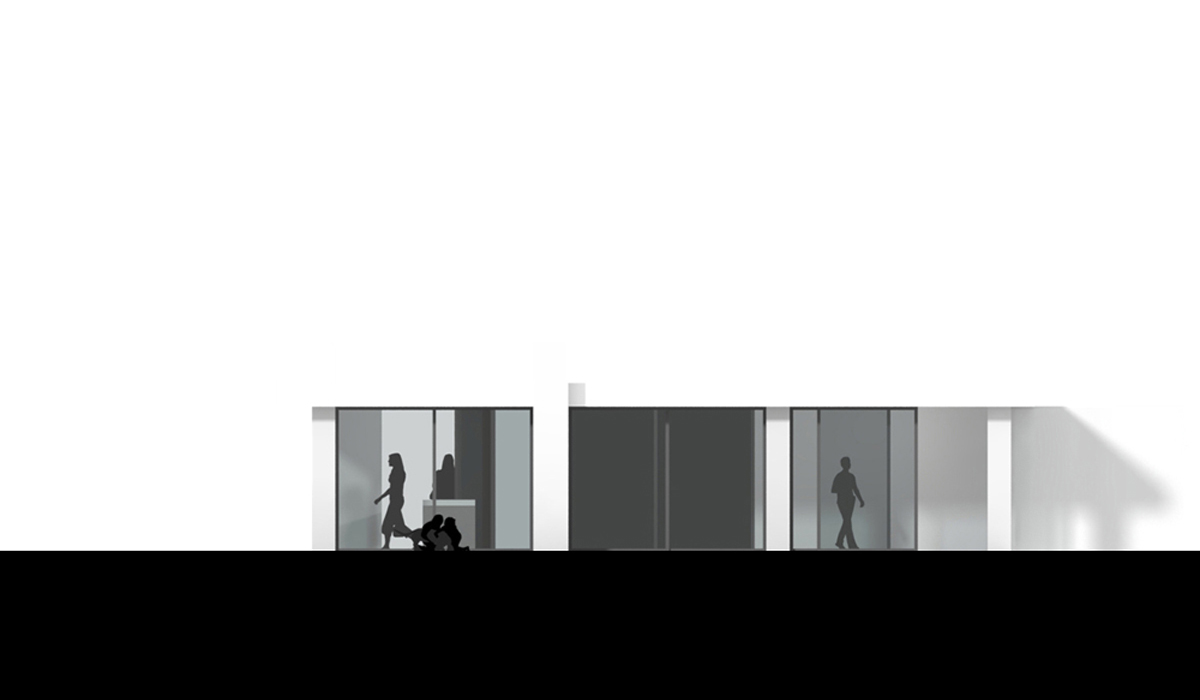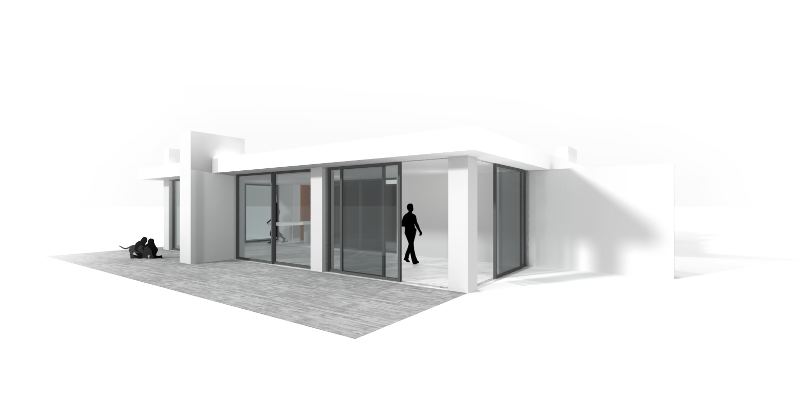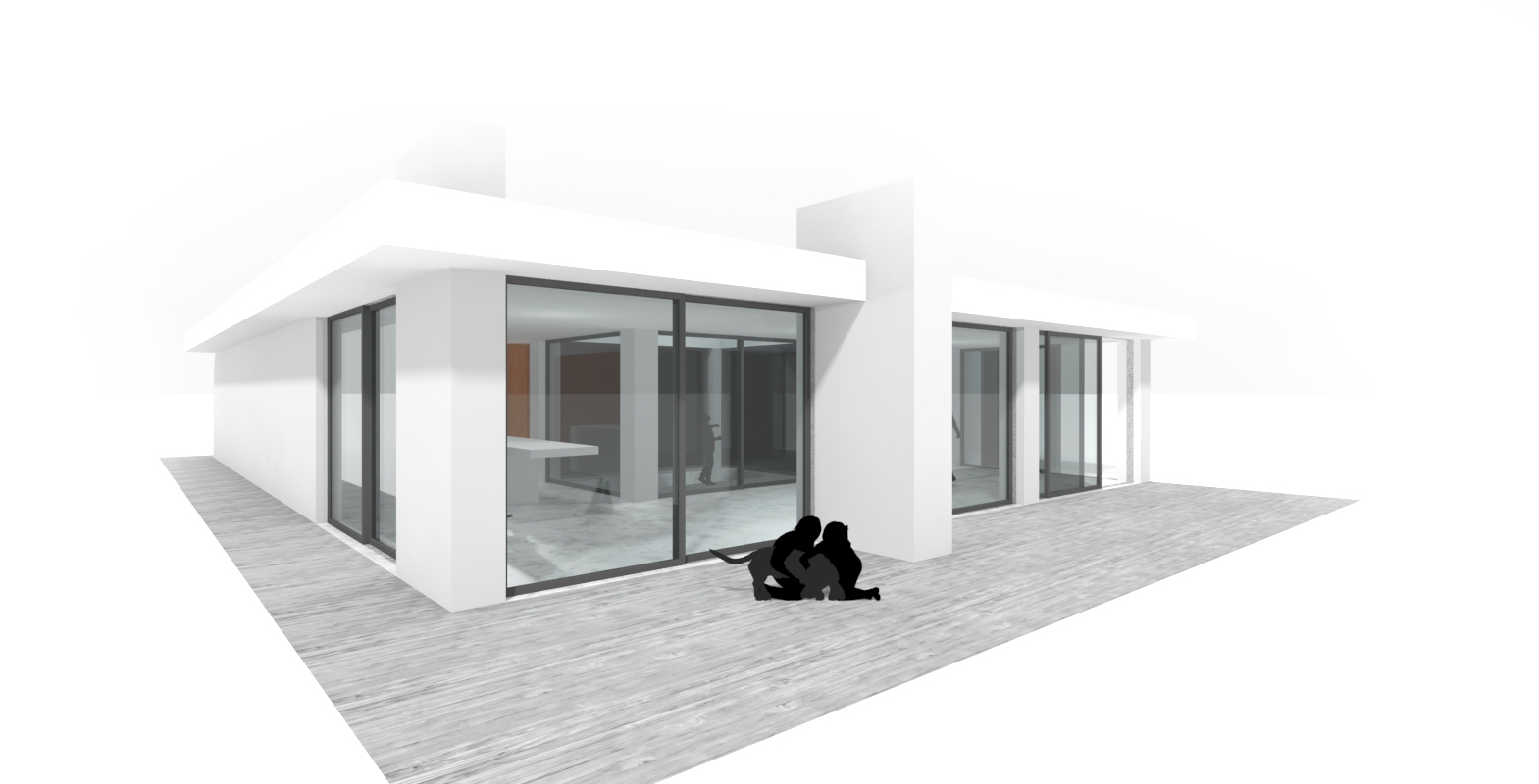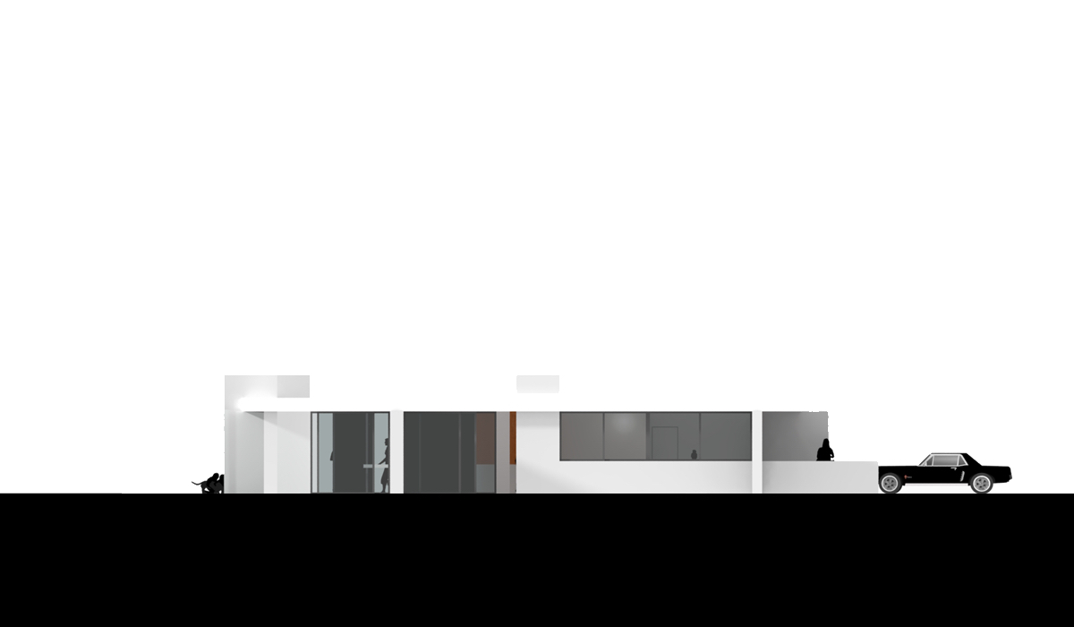 L'architecture pavillonnaire mise en place dans cette étude réunit toutes les fonctions d'une habitation de plain-pied avec le terrain et permet une plus grande relation intérieur/extérieur. Nous avons pris le parti de mettre en avant cette relation, les grandes baies vitrées ouvertes sur le terrain ou le patio font rentrer la nature à l'intérieur du pavillon.